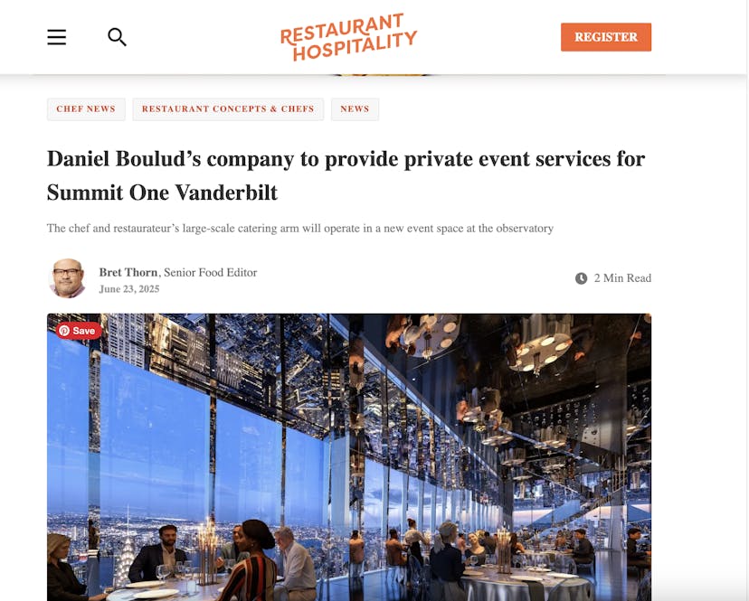 Daniel Boulud’s company to provide private event services for Summit One Vanderbilt